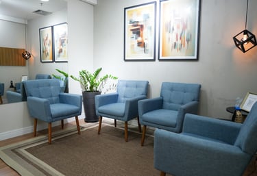 Um ambiente moderno e confortável para o seu bem-estar enquanto espera pelo atendimento.